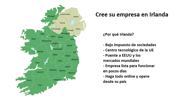 ¿Te has planteado crear una empresa en Irlanda, donde el impuesto de sociedades es de sólo el 12,5%, y los 3 primeros años ni siquiera hay que pagarlo?