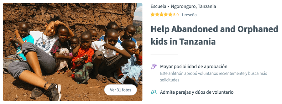 En WorldPackers puedes encontrar más de 170 voluntariados en Tanzania con los que podrás vivir la experiencia de ayudar a negocios y organizaciones locales en su desarrollo, en educación y en su economía local.